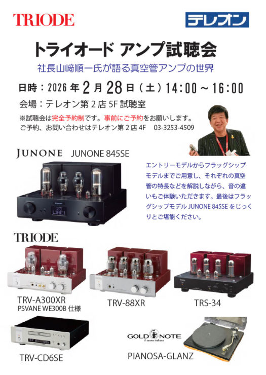 ■ トライオード最新アンプJUNONE 845SEをメインに、ベストセラーの中心モデル3機種をじっくり比較試聴していただきます。